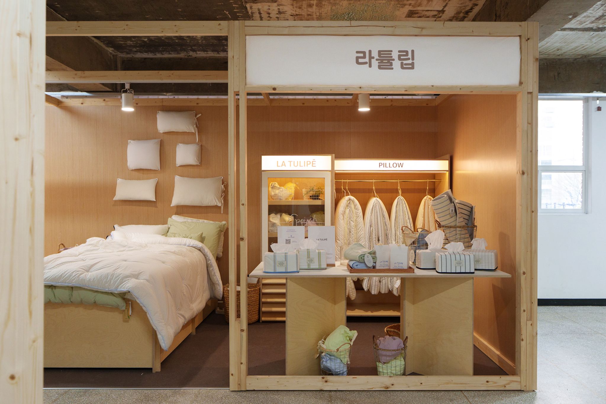 29홈 침구 페어, [29 눕 하우스]에서 오아는 집과 방이 가진 구조적 원리를 디자인 언어로 재구성했습니다.