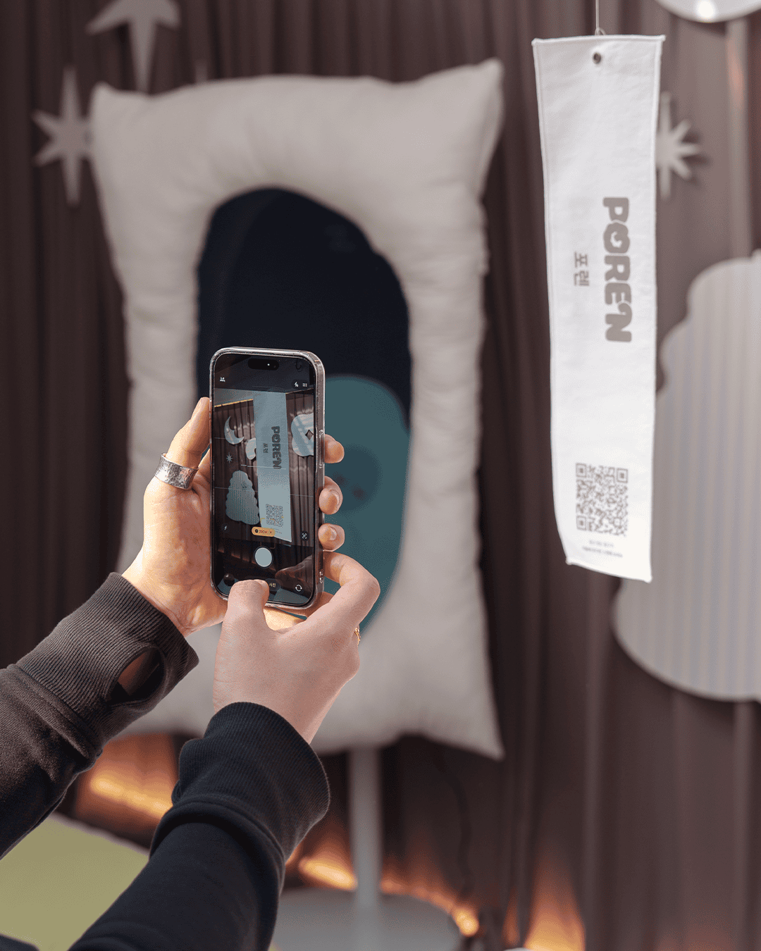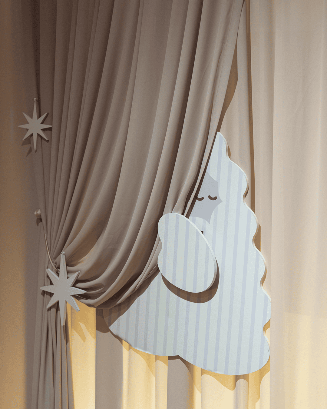 그리드로 이어진 우드가 주는 안정적이고 오픈 된 구조 위 폭신한 패브릭 텍스처 레이어를 더하여, 하나의 연결 된 집 속에서 침구가 생활 속 장면에 자연스럽게 스며드는 장면을 구현하고자 했습니다.