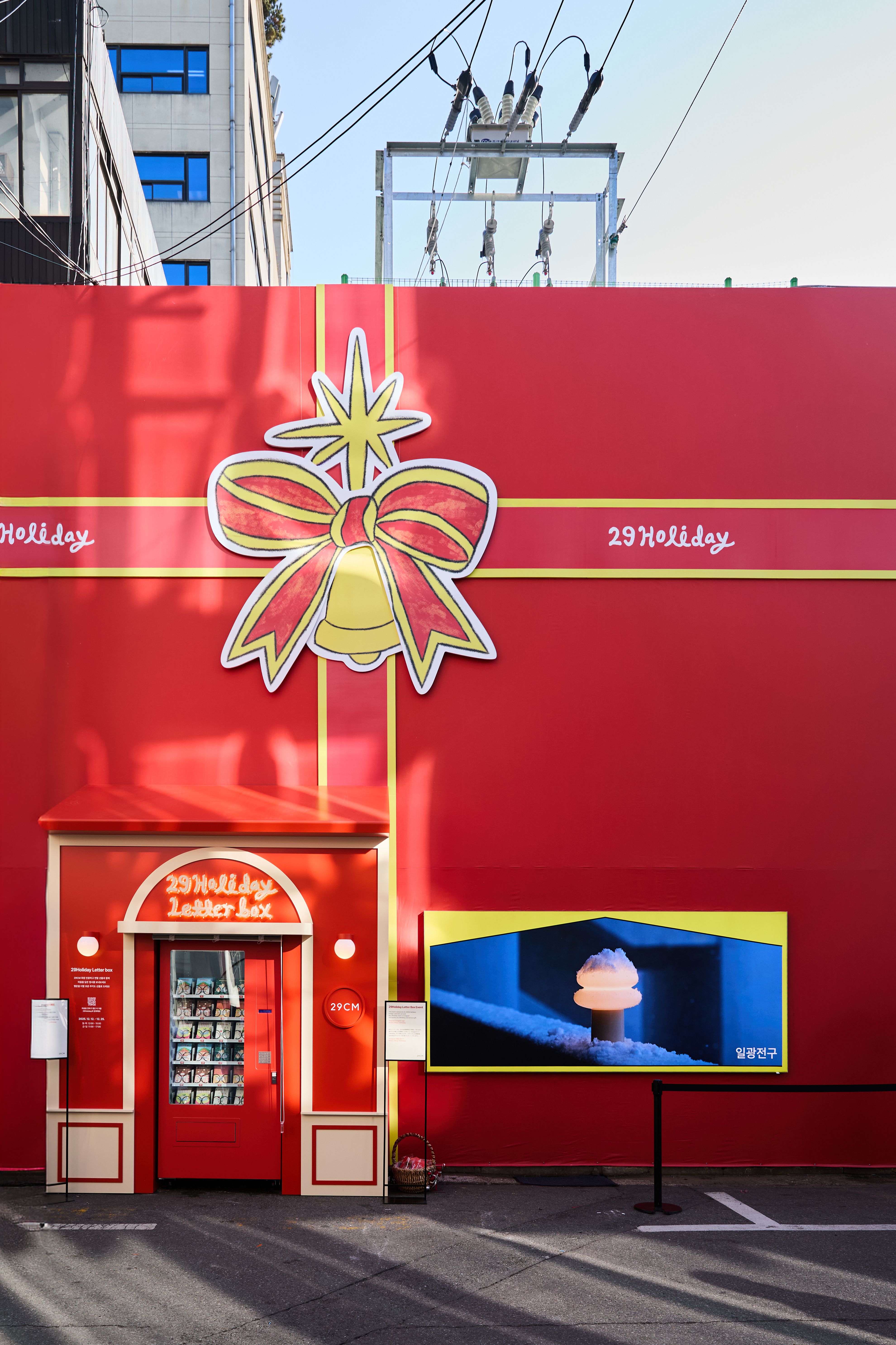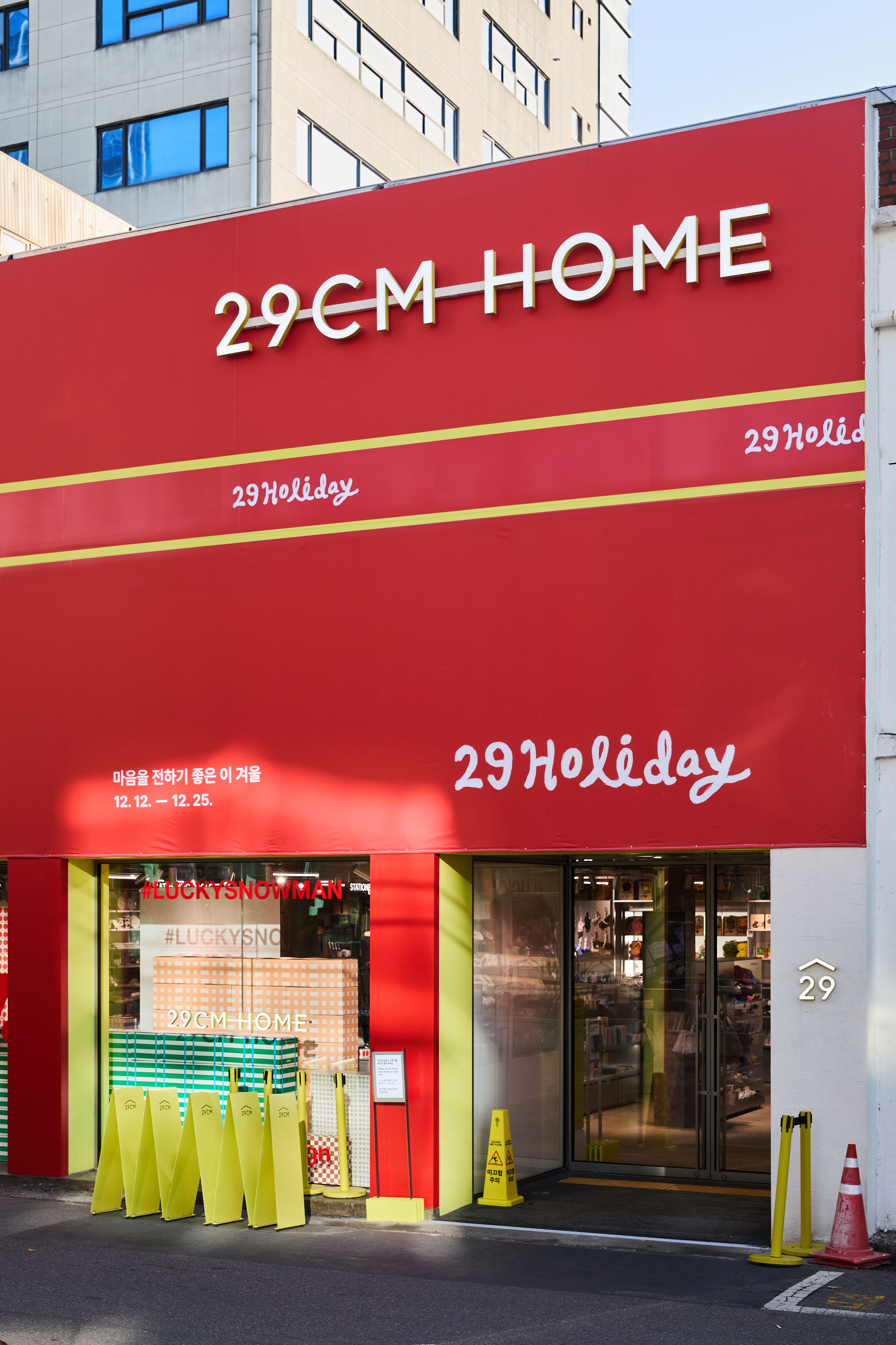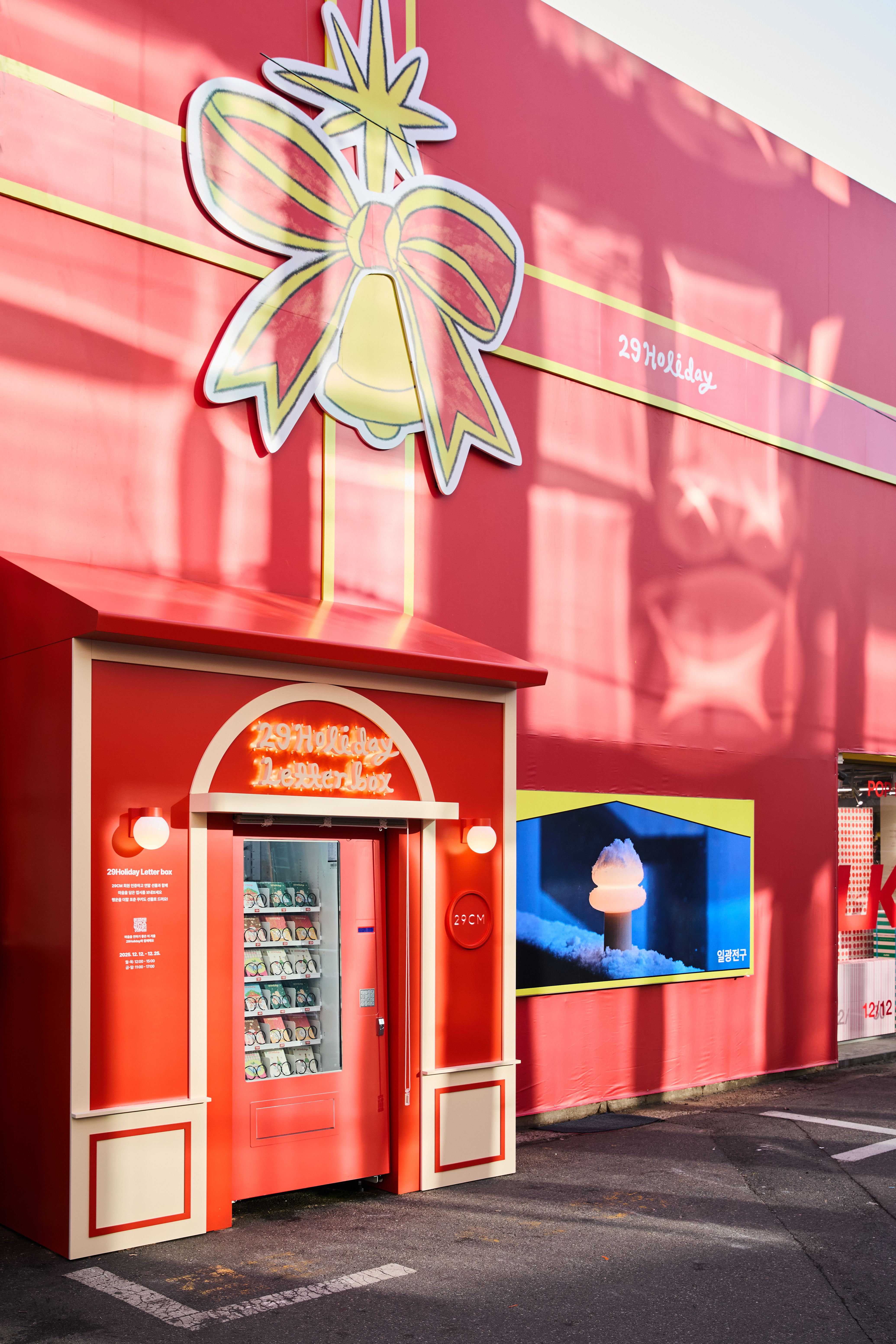 29CM의 연말 캠페인 <29Holiday>의 그래픽 디자인과 공간 디자인, 밴딩머신과 이벤트 운영을 진행하였습니다. 29CM 앱에서는 선물하기 쿠폰 등 최대 91% 혜택으로 홀리데이 아이템을 만나볼 수 있으며, 오프라인 매장 이구홈 성수에서는 ʻ29Holiday Letter Box’ 이벤트를 진행했습니다.